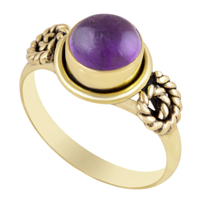 Home | Fashion Rings | Brass Gemstone Rings | Beautiful Twisted Wire Around Amethyst Round Shape Solid Brass Ring