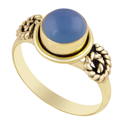 Home | Fashion Rings | Brass Gemstone Rings | Beautiful Twisted Wire Around Blue Chalcedony Round Shape Solid Brass Ring