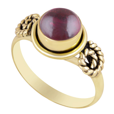 Home | Fashion Rings | Brass Gemstone Rings | Beautiful Twisted Wire Around Garnet Round Shape Solid Brass Ring