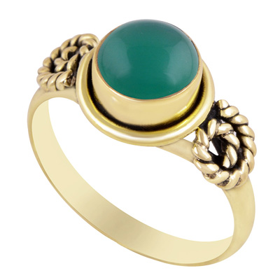 Home | Fashion Rings | Brass Gemstone Rings | Beautiful Twisted Wire Around Green Onyx Round Shape Solid Brass Ring