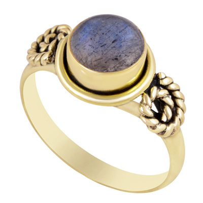 Home | Fashion Rings | Brass Gemstone Rings | Beautiful Twisted Wire Around Labradorite Round Shape Solid Brass Ring