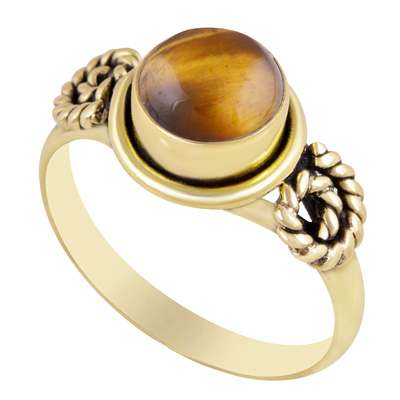 Home | Fashion Rings | Brass Gemstone Rings | Beautiful Twisted Wire Around Tiger's Eye Round Shape Solid Brass Ring
