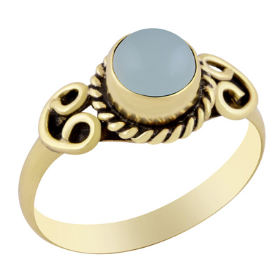 Home | Fashion Rings | Brass Gemstone Rings | Gorgeous Handcrafted Work Around Aqua Chalcedony Round Shape Solid Brass Ring