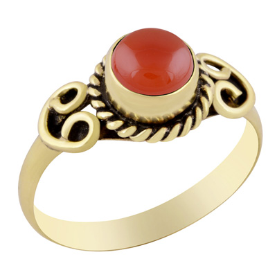 Home | Fashion Rings | Brass Gemstone Rings | Gorgeous Handcrafted Work Around Carnelian Round Shape Solid Brass Ring