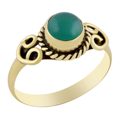 Home | Fashion Rings | Brass Gemstone Rings | Gorgeous Handcrafted Work Around Green Onyx Round Shape Solid Brass Ring