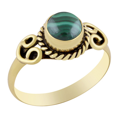 Home | Fashion Rings | Brass Gemstone Rings | Gorgeous Handcrafted Work Around Malachite Round Shape Solid Brass Ring