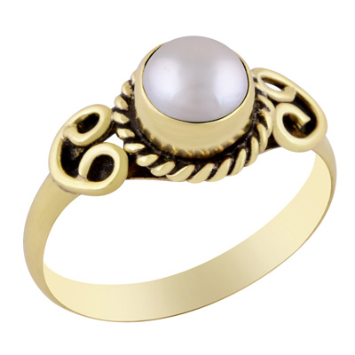 Home | Fashion Rings | Brass Gemstone Rings | Gorgeous Handcrafted Work Around Pearl Round Shape Solid Brass Ring