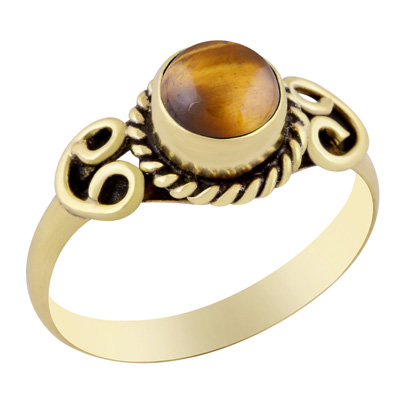 Home | Fashion Rings | Brass Gemstone Rings | Gorgeous Handcrafted Work Around Tiger's Eye Round Shape Solid Brass Ring