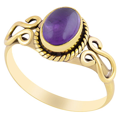 Home | Fashion Rings | Brass Gemstone Rings | Alluring Coil Wire Work Around Amethyst Oval Shape Solid Brass Ring