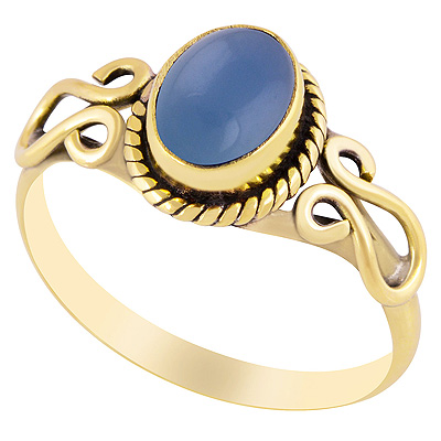 Home | Fashion Rings | Brass Gemstone Rings | Alluring Coil Wire Work Around Blue Chalcedony Oval Shape Solid Brass Ring