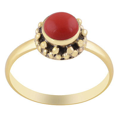 Home | Fashion Rings | Brass Gemstone Rings | Stunning Rawa Design Around Coral Round Shape Solid Brass Ring