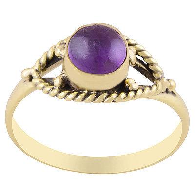 Home | Fashion Rings | Brass Gemstone Rings | Authentic Wire & Rawa Work Around Amethyst Round Shape Solid Brass Ring