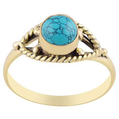 Home | Fashion Rings | Brass Gemstone Rings | Authentic Wire & Rawa Work Around Turquoise Round Shape Solid Brass Ring