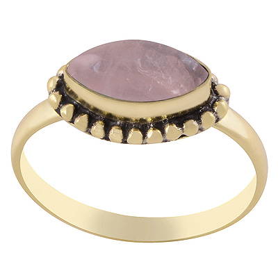 Gorgeous Rawa Work Around Rose Quartz Marquise Shape Solid Brass Ring