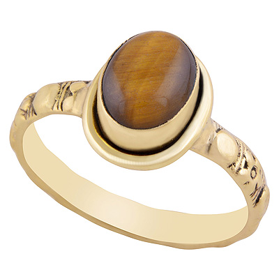 Home | Fashion Rings | Brass Gemstone Rings | Gorgeous Embossed Work Around Tiger's Eye Oval Shape Solid Brass Ring