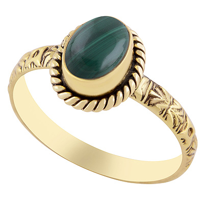 Home | Fashion Rings | Brass Gemstone Rings | Alluring Embossed Work Around Malachite Oval Shape Solid Brass Ring
