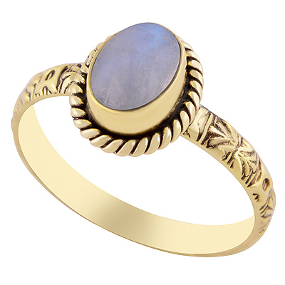 Home | Fashion Rings | Brass Gemstone Rings | Alluring Embossed Work Around Rainbow Moonstone Oval Shape Solid Brass Ring
