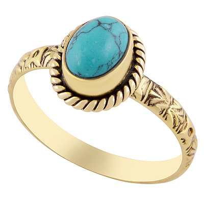 Home | Fashion Rings | Brass Gemstone Rings | Alluring Embossed Work Around Turquoise Oval Shape Solid Brass Ring
