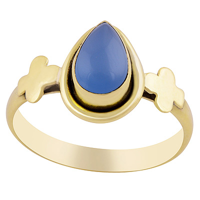 Home | Fashion Rings | Brass Gemstone Rings | Gorgeous Plant Work Around Blue Chalcedony Pear Shape Solid Brass Ring