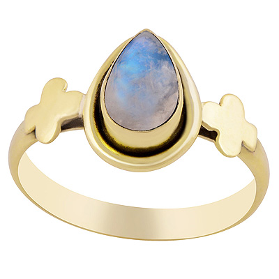 Home | Fashion Rings | Brass Gemstone Rings | Gorgeous Plant Work Around Rainbow Moonstone Pear Shape Solid Brass Ring