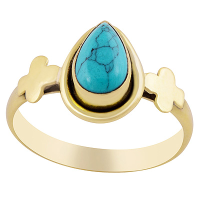 Home | Fashion Rings | Brass Gemstone Rings | Gorgeous Plant Work Around Turquoise Pear Shape Solid Brass Ring