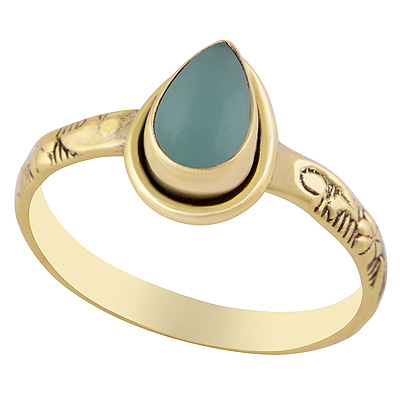 Home | Fashion Rings | Brass Gemstone Rings | Stunning Embossed Work Around Aqua Chalcedony Pear Shape Solid Brass Ring