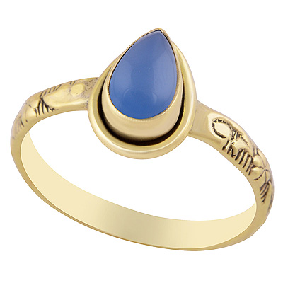 Home | Fashion Rings | Brass Gemstone Rings | Stunning Embossed Work Around Blue Chalcedony Pear Shape Solid Brass Ring