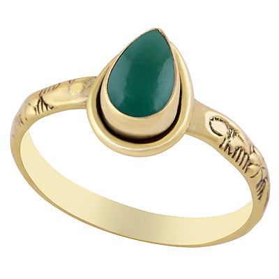 Home | Fashion Rings | Brass Gemstone Rings | Stunning Embossed Work Around Green Onyx Pear Shape Solid Brass Ring