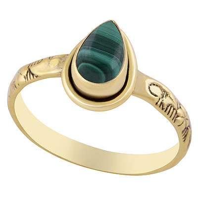 Home | Fashion Rings | Brass Gemstone Rings | Stunning Embossed Work Around Malachite Pear Shape Solid Brass Ring
