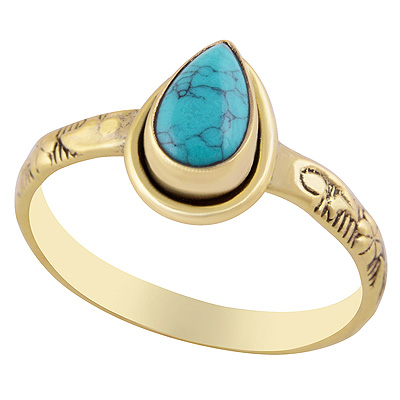 Home | Fashion Rings | Brass Gemstone Rings | Stunning Embossed Work Around Turquoise Pear Shape Solid Brass Ring