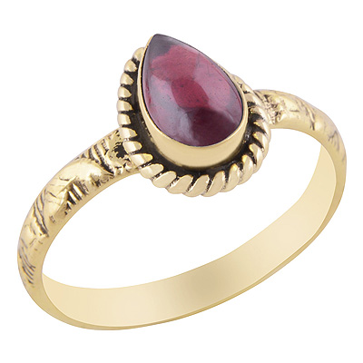 Beautiful Embossed Work Around Garnet Pear Shape Solid Brass Ring