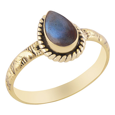 Beautiful Embossed Work Around Labradorite Pear Shape Solid Brass Ring