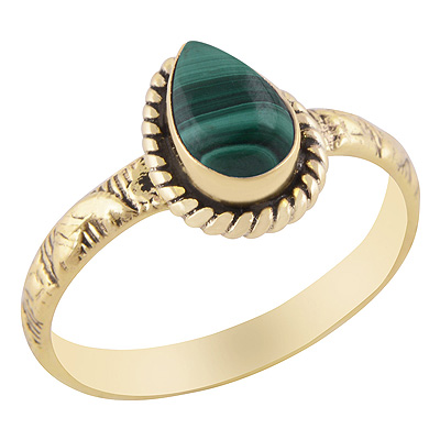 Beautiful Embossed Work Around Malachite Pear Shape Solid Brass Ring
