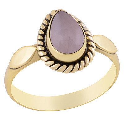 Home | Fashion Rings | Brass Gemstone Rings | Beautiful Twisted Wire Work Around Rose Quartz Pear Shape Solid Brass Ring