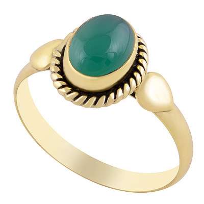 Beautiful Drop Design Around Green Onyx Oval Shape Solid Brass Ring