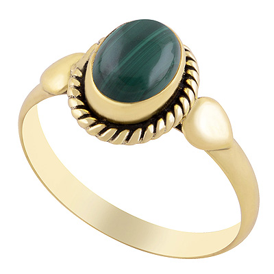 Beautiful Drop Design Around Malachite Oval Shape Solid Brass Ring
