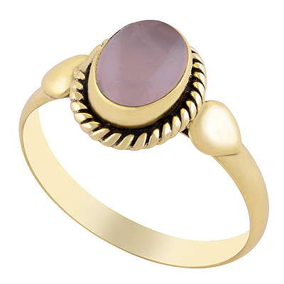Beautiful Drop Design Around Rose Quartz Oval Shape Solid Brass Ring