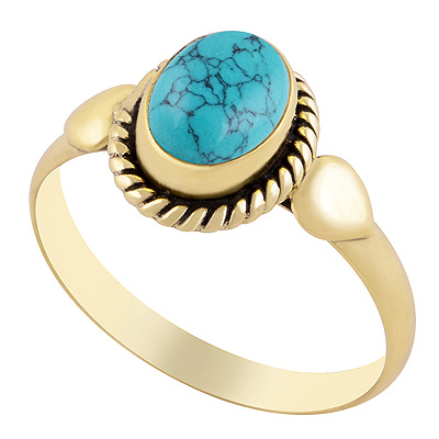 Beautiful Drop Design Around Turquoise Oval Shape Solid Brass Ring
