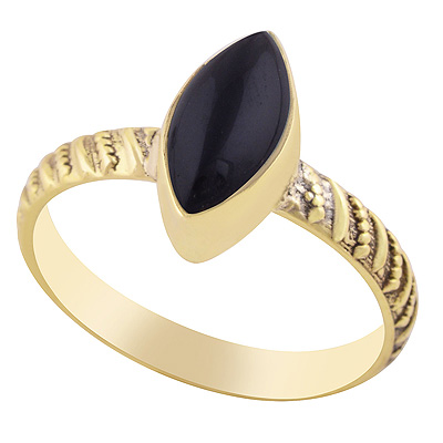 Stunning Handcrafted Work Around Black Onyx Marquise Shape Solid Brass Ring