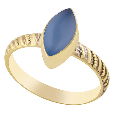 Stunning Handcrafted Work Around Blue Chalcedony Marquise Shape Solid Brass Ring