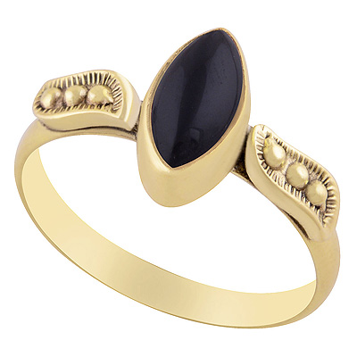 Alluring Handcrafted Rawa Design Around Black Onyx Marquise Shape Solid Brass Ring