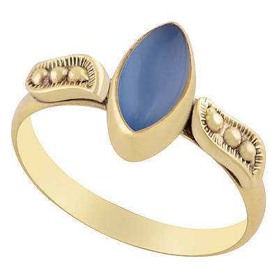 Alluring Handcrafted Rawa Design Around Blue Chalcedony Marquise Shape Solid Brass Ring