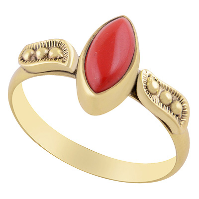 Alluring Handcrafted Rawa Design Around Coral Marquise Shape Solid Brass Ring
