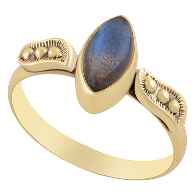 Alluring Handcrafted Rawa Design Around Labradorite Marquise Shape Solid Brass Ring