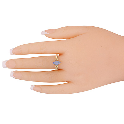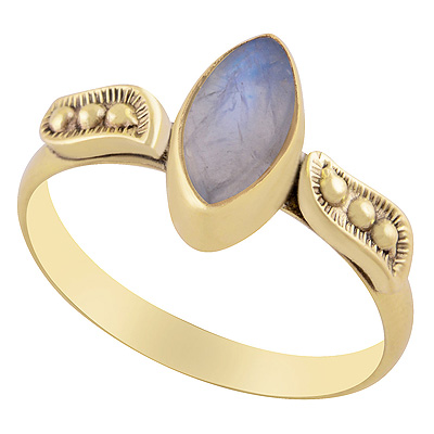 Alluring Handcrafted Rawa Design Around Blue Chalcedony Marquise Shape Solid Brass Ring