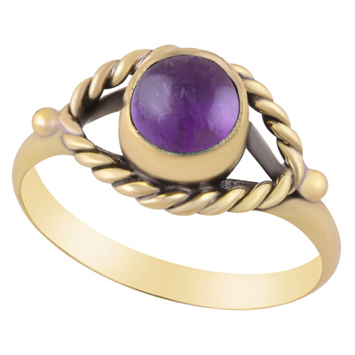 Home | Fashion Rings | Brass Gemstone Rings | Authentic Wire & Rawa Work Around Amethyst Round Shape Solid Brass Ring