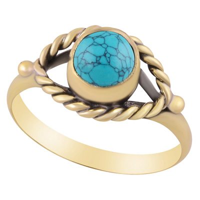 Home | Fashion Rings | Brass Gemstone Rings | Authentic Wire & Rawa Work Around Turquoise Round Shape Solid Brass Ring