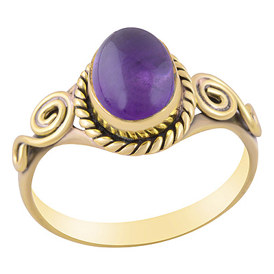 Home | Fashion Rings | Brass Gemstone Rings | Beautiful Wire Coil Work Around Amethyst Oval Shape Solid Brass Ring