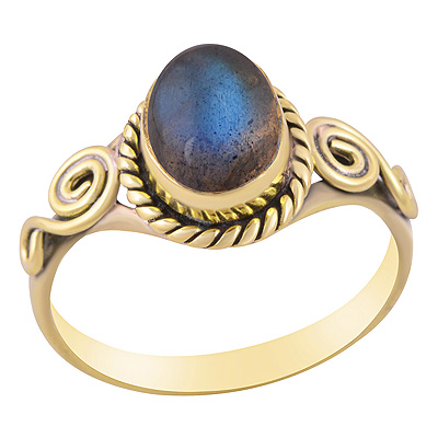 Home | Fashion Rings | Brass Gemstone Rings | Beautiful Wire Coil Work Around Labradorite Oval Shape Solid Brass Ring
