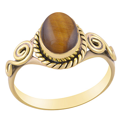 Home | Fashion Rings | Brass Gemstone Rings | Beautiful Wire Coil Work Around Tiger's Eye Oval Shape Solid Brass Ring